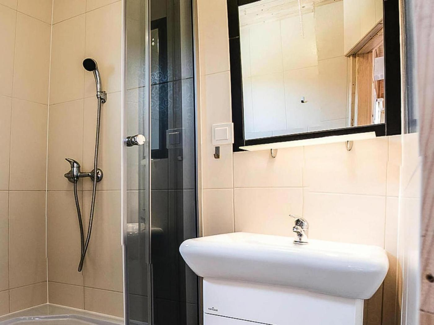 W domu wakacyjnym zapewniono taras, kilka sypialni (2), salon z telewizorem, kuchnię ze standardowym wyposażeniem, takim jak lodówka, a także łazienkę (1) z prysznicem. Goście mogą podziwiać widok na ogród.