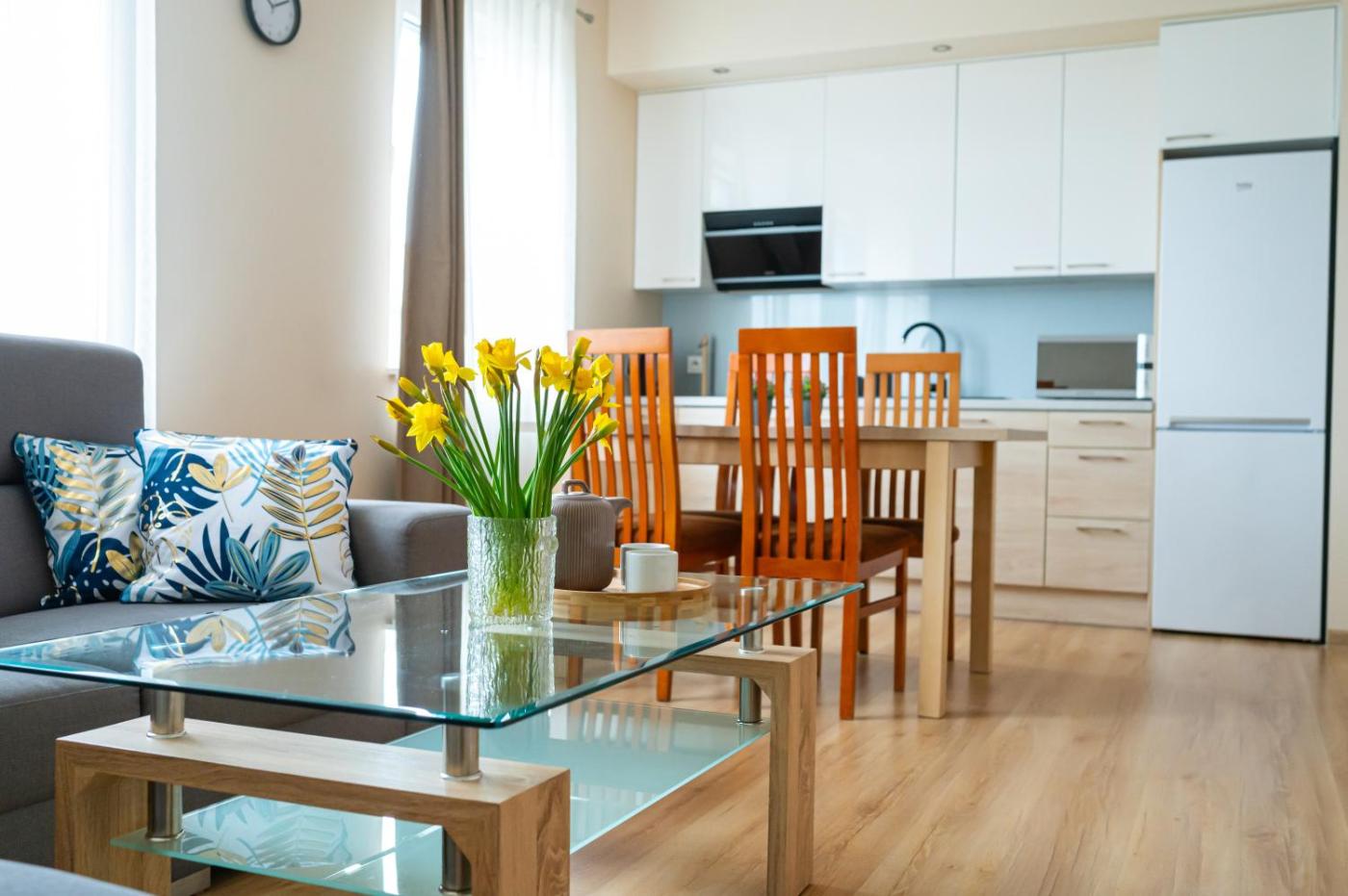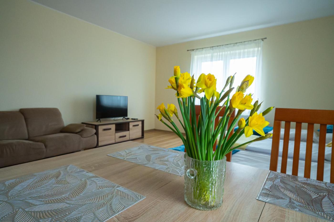 Apartament Rodzinny z 1 sypialnią. This apartment comprises 1 living room, 1 separate bedroom and 1 bathroom with a shower. Meals can be prepared in the kitchen, which comes with a stovetop, a refrigerator, kitchenware and a microwave. The apartment provides a tea and coffee maker, a wardrobe, heating, a flat-screen TV, as well as garden views. The unit offers 6 beds. Apartament - 5 osobowy. Powierzchnia pokoju ok.: 45 mkw.