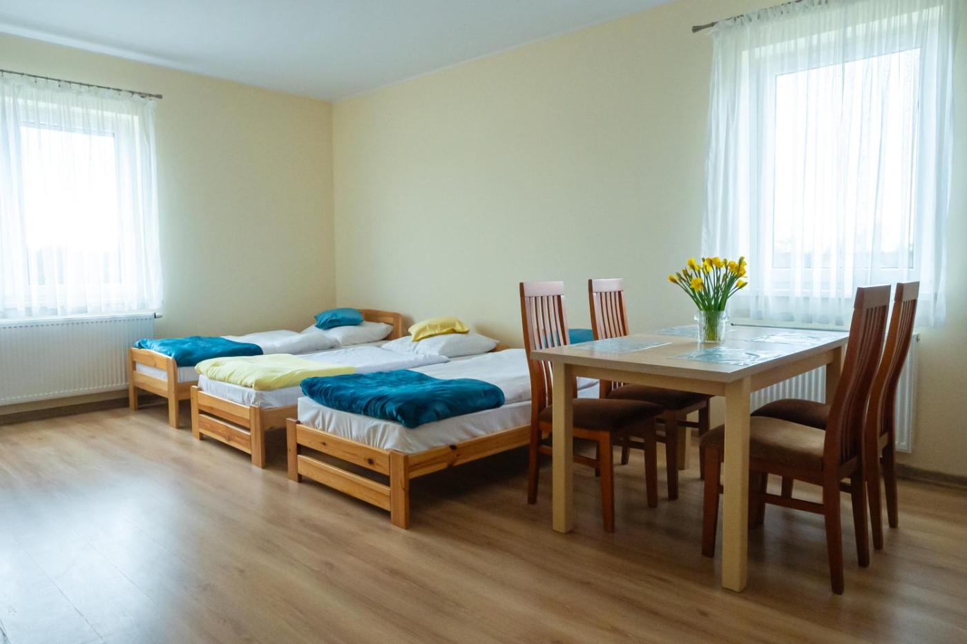 Pokój rodzinny. The family room provides a wardrobe and heating, as well as a private bathroom boasting a shower. The well-fitted kitchenette has a stovetop, a refrigerator, kitchenware and an oven. The spacious family room offers a flat-screen TV, a washing machine, a tea and coffee maker, a dining area as well as garden views. The unit has 7 beds. Rodzinny - 6 osobowy. Powierzchnia pokoju ok.: 60 mkw. ;